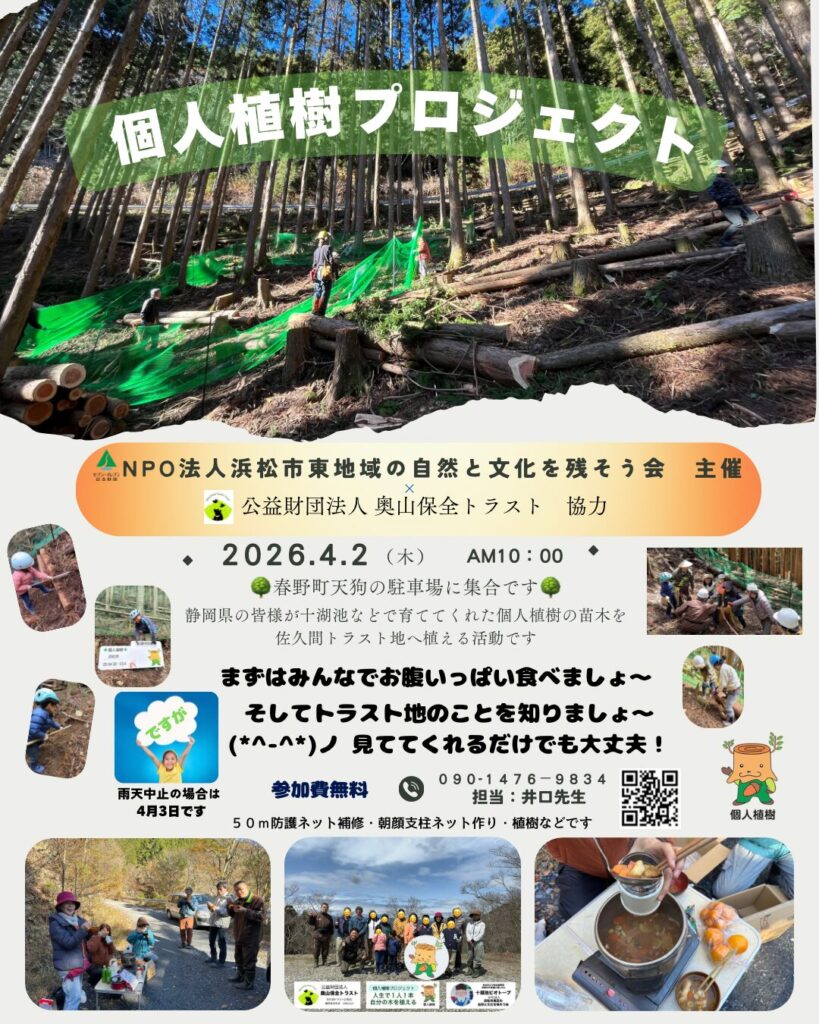 公益財団法人 奥山保全トラストさんが大切に守っている山へ植樹に行きます。